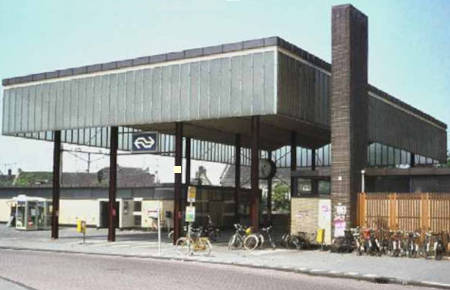 Onder: De geschiedenis van station Amsterdam Sloterdijk begint in 1956, als in dar jaar het eerste station aan de Oude Lijn in gebruik wordt genomen. Ook dat station was destijds baanbrekend; voor het eerst bestond een stationsgebouw uit een forse luifel, met daaronder losse gebouwtjes voor de diverse faciliteiten. In 1985 werd het oude station Amsterdam Sloterdijk -dat toen trouwens Amsterdam Sloterdijk Zuid heette- gesloten en gesloopt.