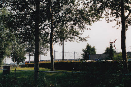 Onder (beide foto’s): Even ten noorden van Lelystad is een opstelterrein, waar treinstellen worden gestald en schoongemaakt. Ook is er een wasstraat. Bovendien was hier tot 2012 een standplaats voor het rijdend personeel. Op de foto links is een gewaard gebleven bordessein te zien. Deze stond ooit bij het oostelijke aansluitspoor van het emplacement Watergraafsmeer, vlakbij Diemen. Toen daar in 1989 de beveiliging werd gemoderniseerd werd dit sein geconserveerd en kreeg het hier haar plekje. Beide foto’s zijn al in 1997 gemaakt. Inmiddels is opstelterrein behoorlijk uitgebreid. De standplaats werd in 2012 verplaatst naar een pand tegenover het station. (zie ook de eerste pagina)