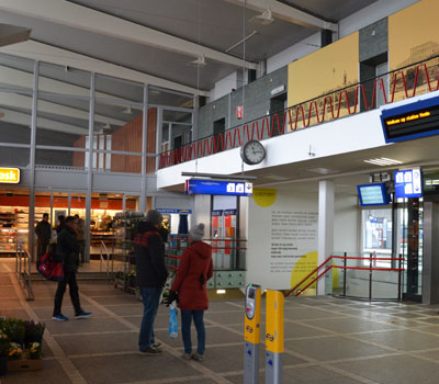 en onder: De hal van het stationsgebouw doet wat denken aan dat